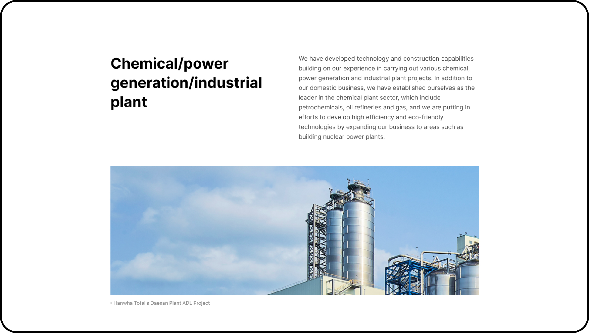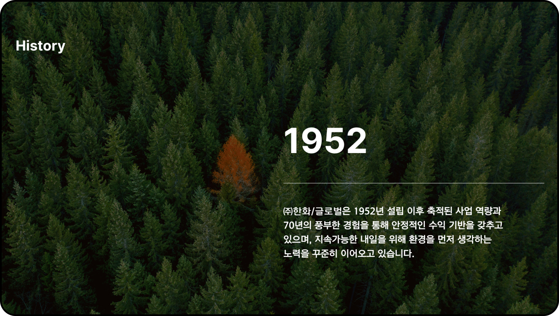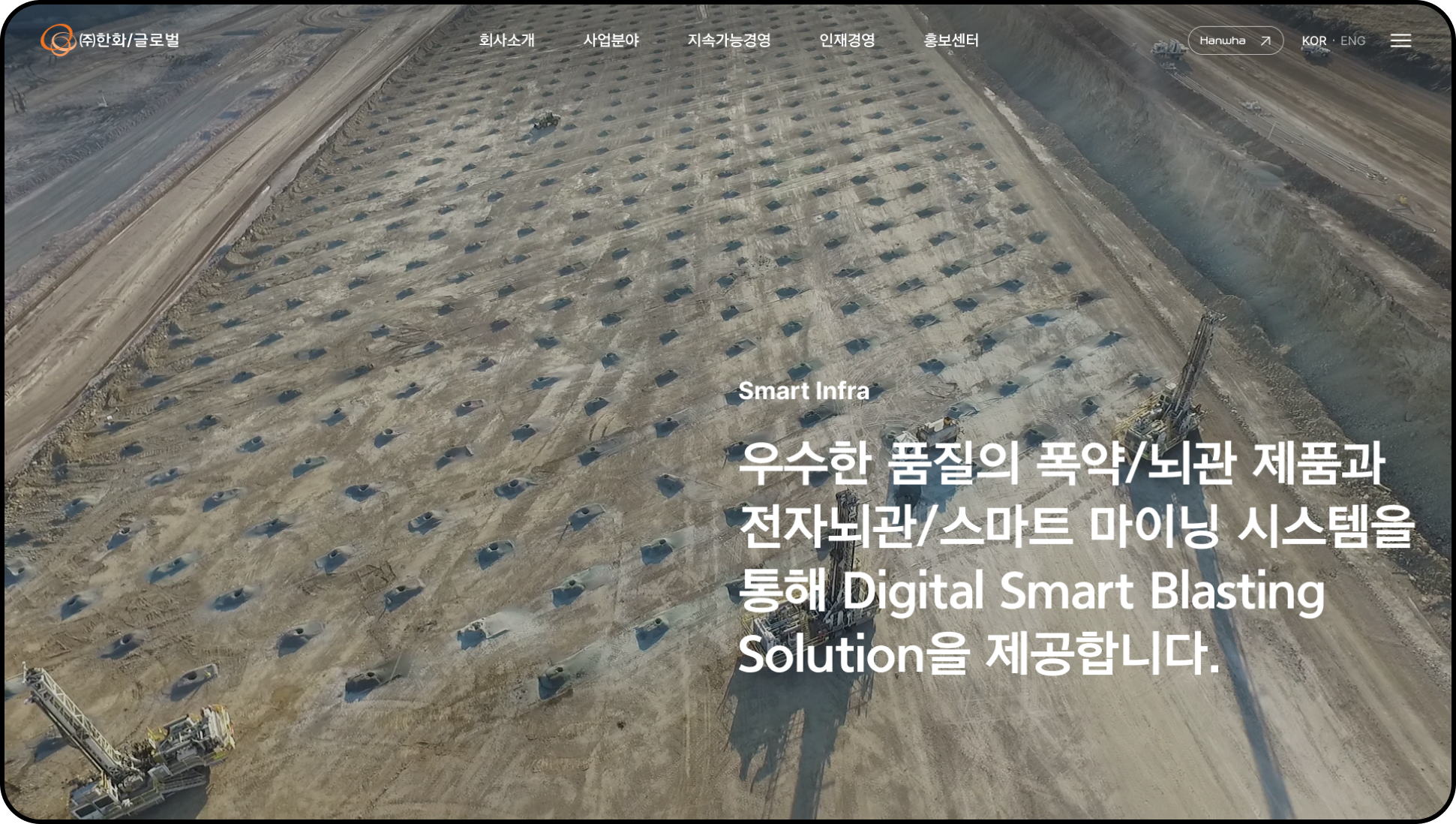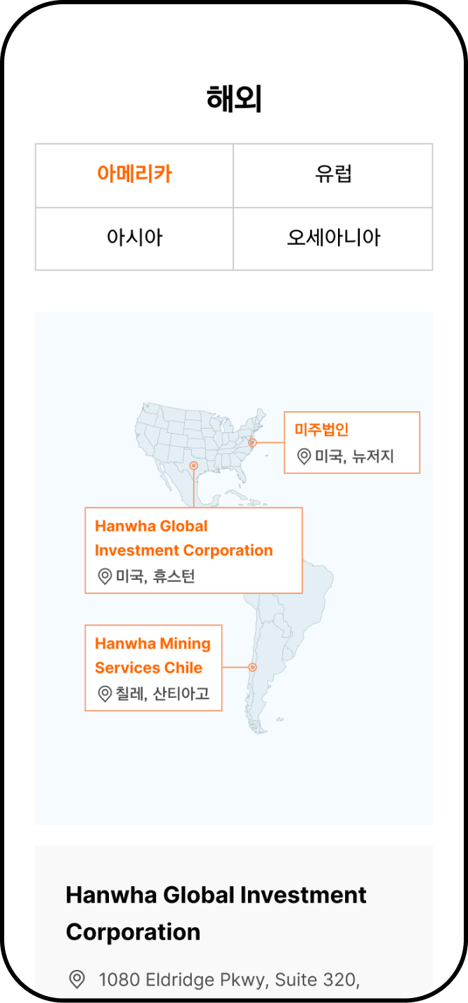 한화글로벌의 다양한 국내외 사업장을 카테고리별로 체계적으로 구분하고, 이를 위치가 표시된 지도와 함께 시각화하여 사용자에게 직관적인 정보를 제공합니다. 또한 지도 기반의 바로보기 기능을 도입해 각 사업장의 위치를 손쉽게 탐색할 수 있도록 개선함으로써, 사용자의 편의성과 접근성을 한층 높였습니다. 이를 통해 단순한 정보 전달을 넘어, 한화글로벌의 글로벌 네트워크와 사업 영역을 더욱 명확하고 생생하게 경험할 수 있도록 구성했습니다.