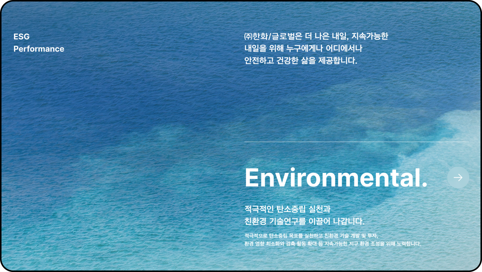 본 프로젝트는 ㈜한화 글로벌의 지속가능경영 비전과 ESG 기반의 기업 이미지를 강화하기 위한 웹사이트 구축에 초점을 맞췄습니다. 단순한 정보 제공을 넘어, 한화 글로벌의 주요 사업과 친환경 솔루션을 직관적으로 이해할 수 있도록 설계했으며, 와이드 화면 구성과 트렌디한 디자인을 통해 글로벌 기업으로서의 긍정적인 브랜드 이미지를 전달했습니다. 또한 반응형 웹, SEO 강화, 공유 기능 등 디지털 환경에 최적화된 요소를 적용해 사용자 경험을 향상시키고, 더 많은 고객과의 접점을 확대할 수 있는 플랫폼으로 발전시켰습니다.
