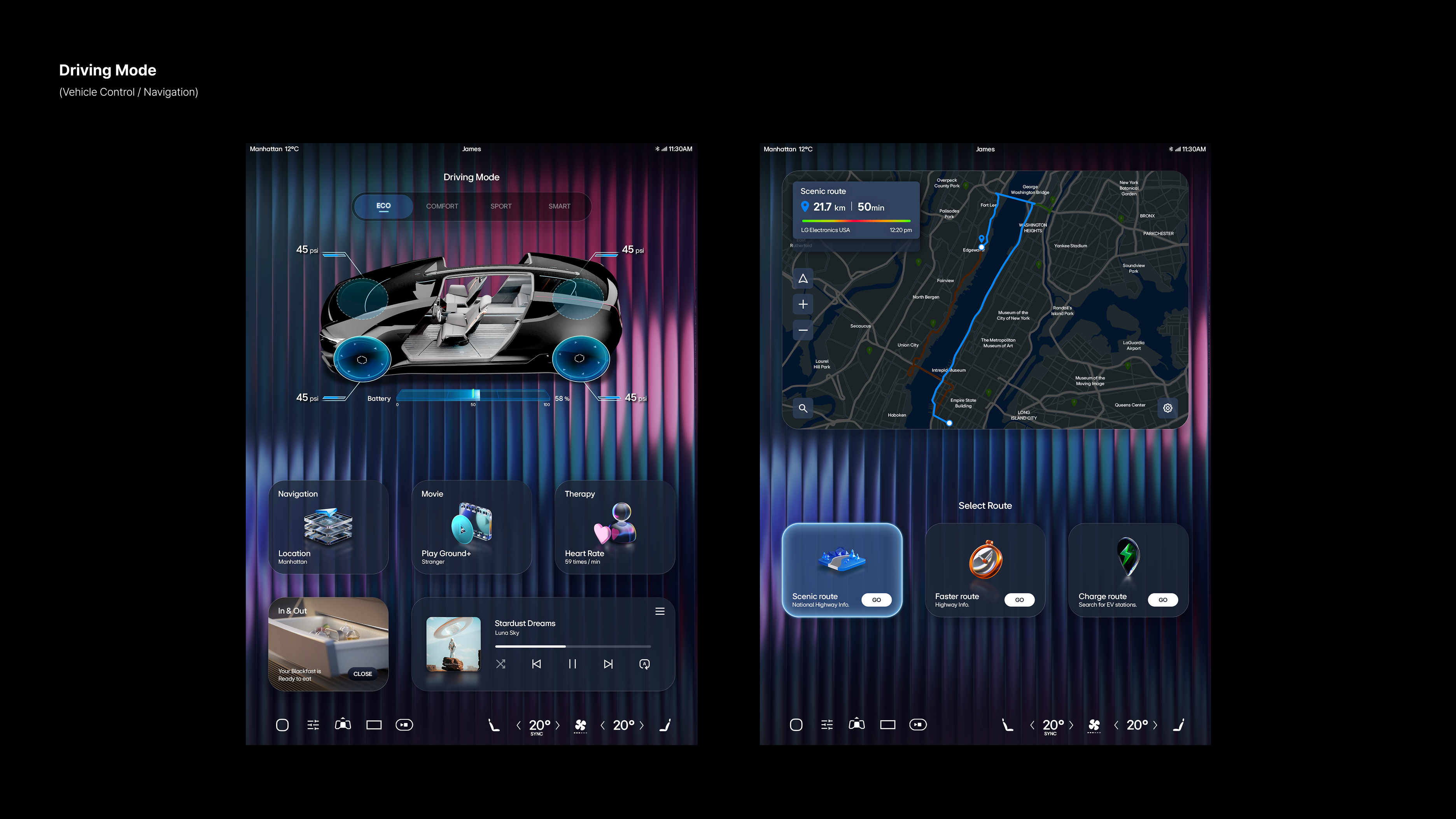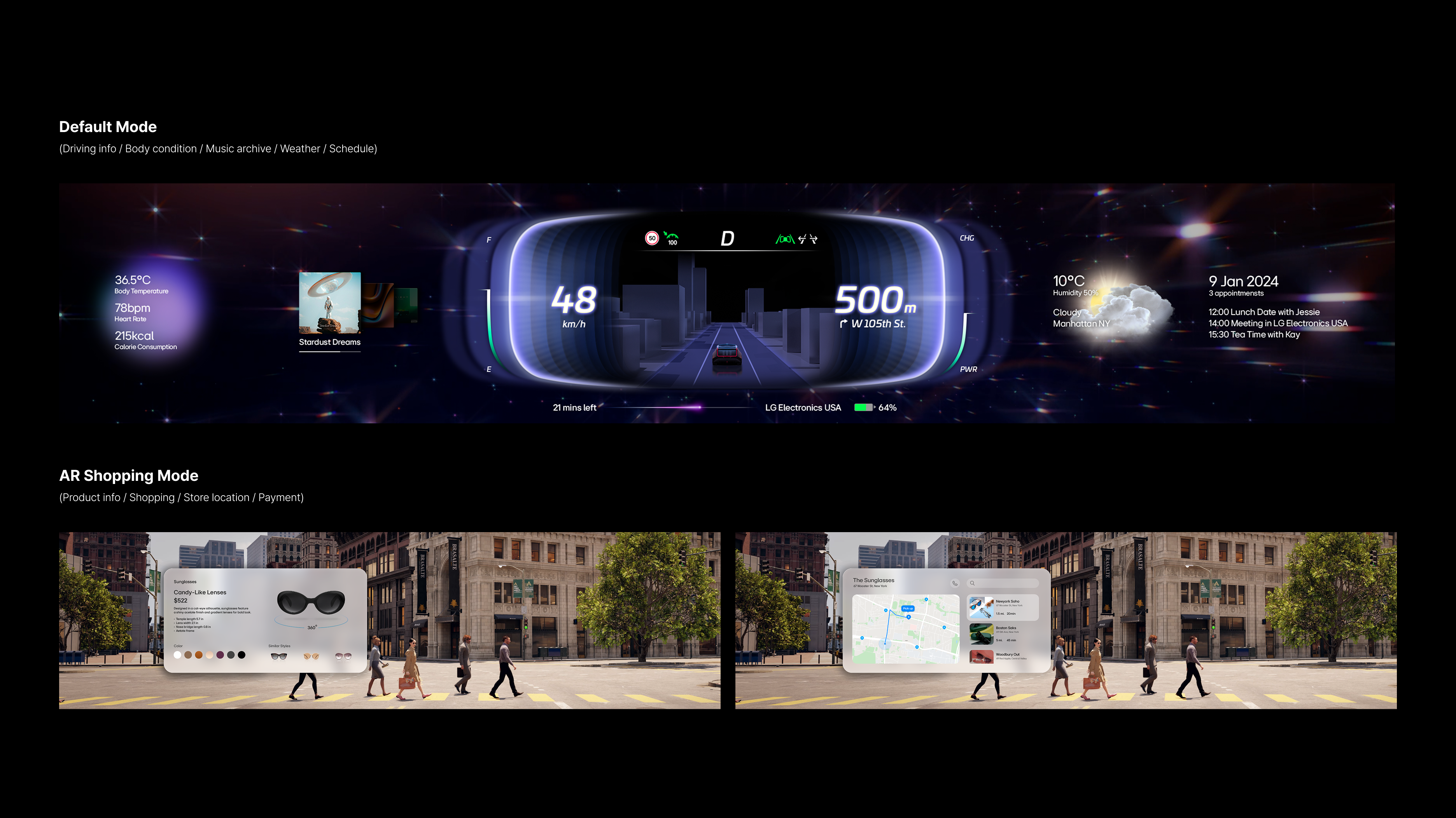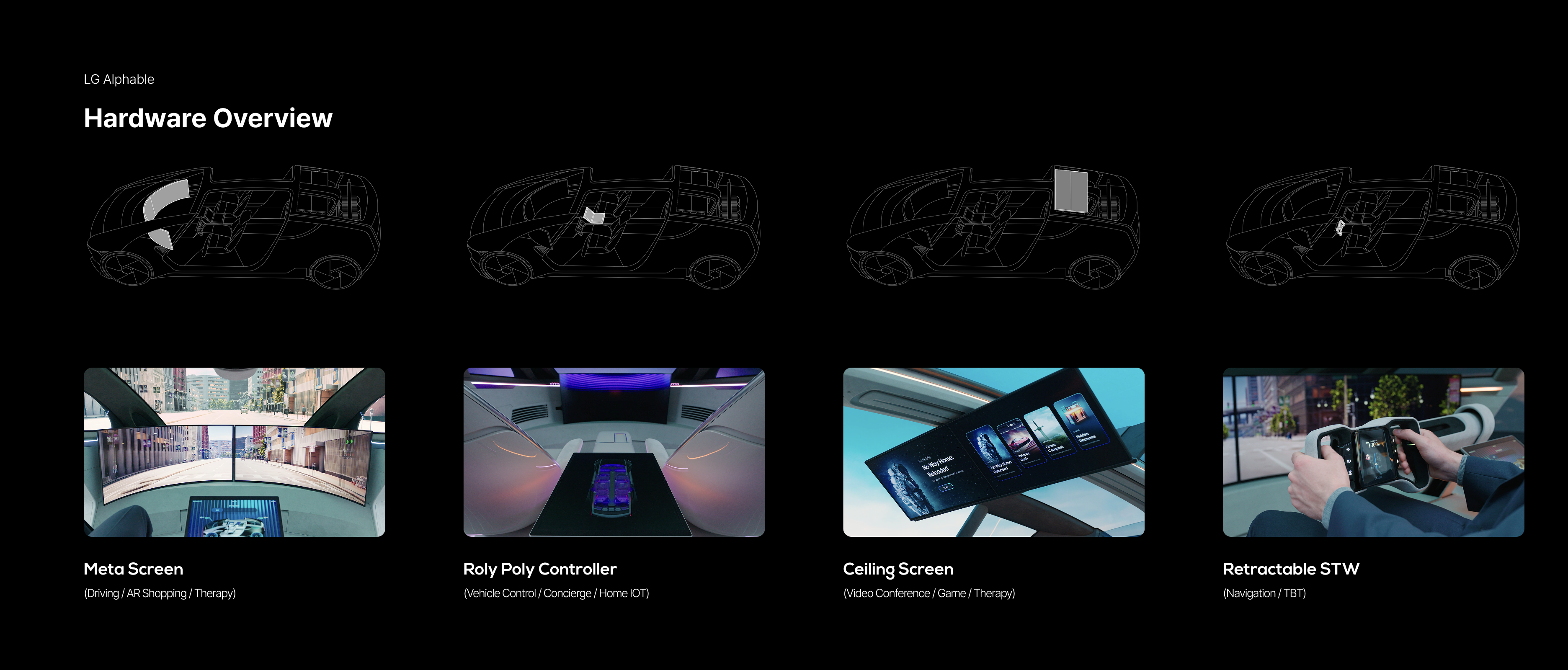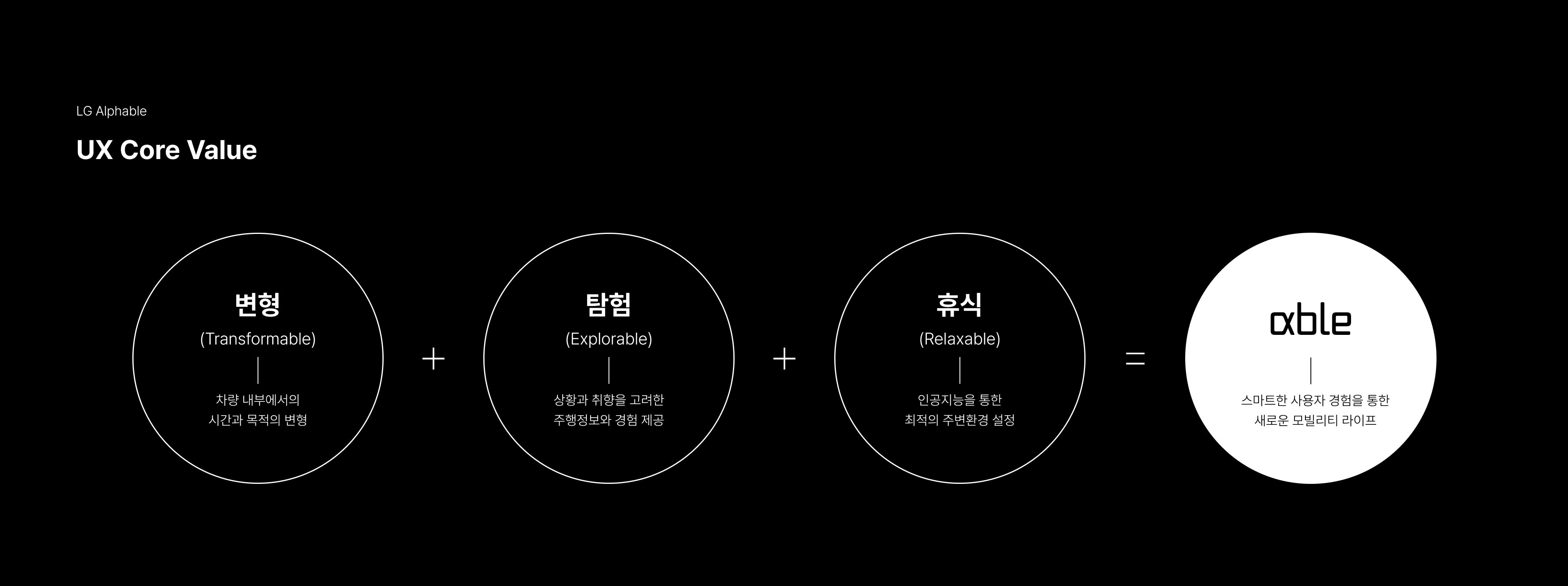 이 프로젝트는 LG전자가 CES 2024에서 공개한 **‘LG 알파블(Alphable, αble)’**을 중심으로 진행되었습니다. 알파블은 차량 이동 시간을 혁신적인 경험으로 전환하는 솔루션으로, 사용자 맞춤형 정보와 콘텐츠를 제공하며 새로운 모빌리티 공간의 가능성을 제시합니다. 이름은 ‘알파(α)’와 ‘able’의 합성어로, 자동차 안에서 모든 것을 가능하게 한다는 의미를 담고 있으며, 이를 통해 사용자는 기대 이상의 가치를 경험할 수 있습니다. 본 프로젝트는 차내 스마트 라이프를 실현하는 UI/UX 디자인을 통해 이동 시간을 더욱 유용하고 즐거운 경험으로 확장하는 것을 목표로 하였으며, LG전자의 전장 기술과 혁신적 접근을 기반으로 사용자 중심의 디자인을 구현했습니다.