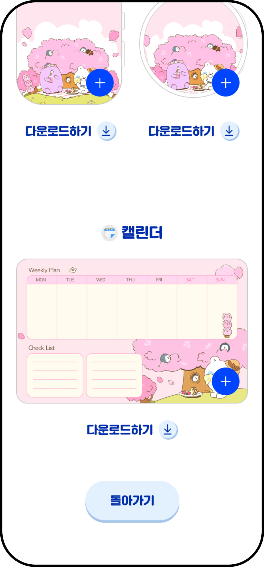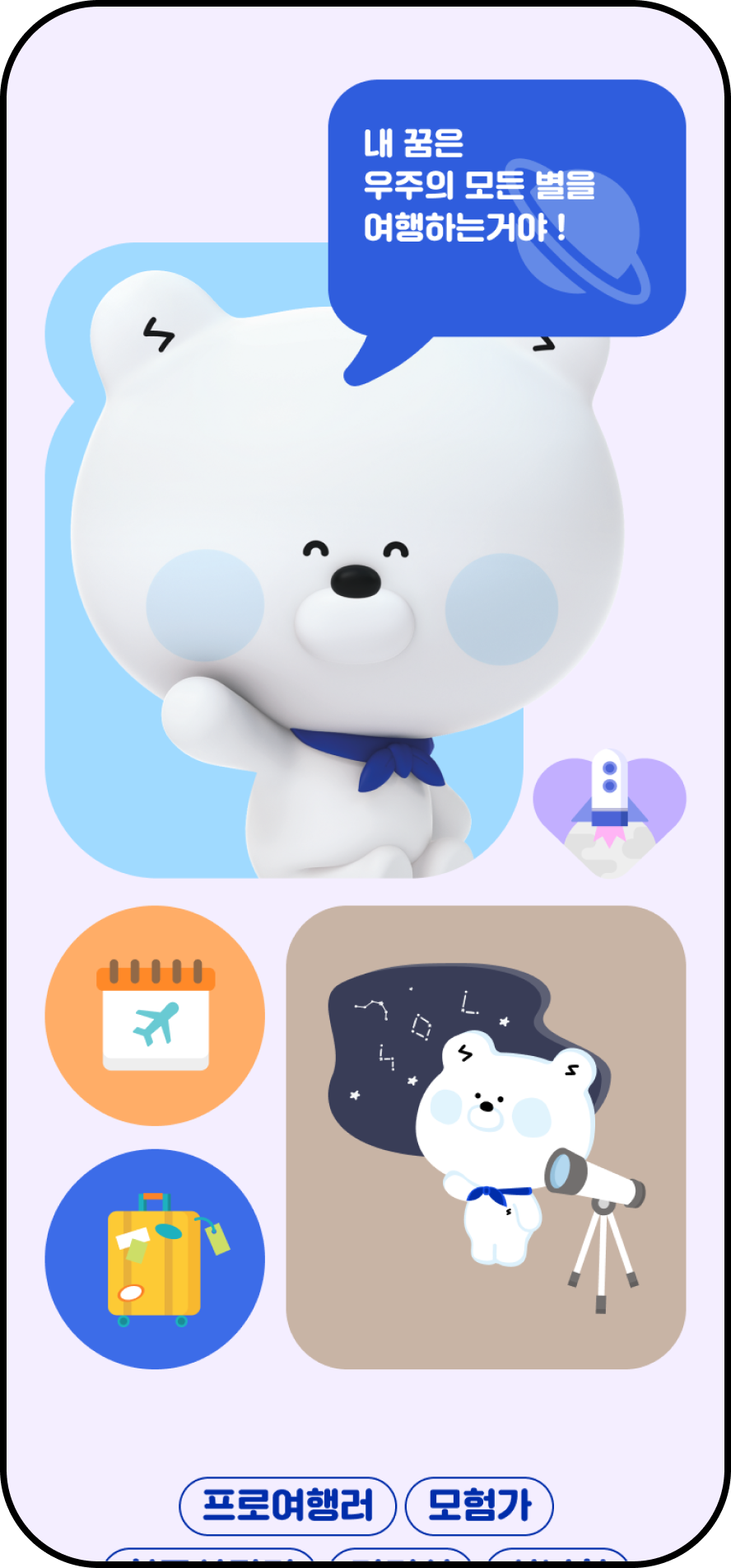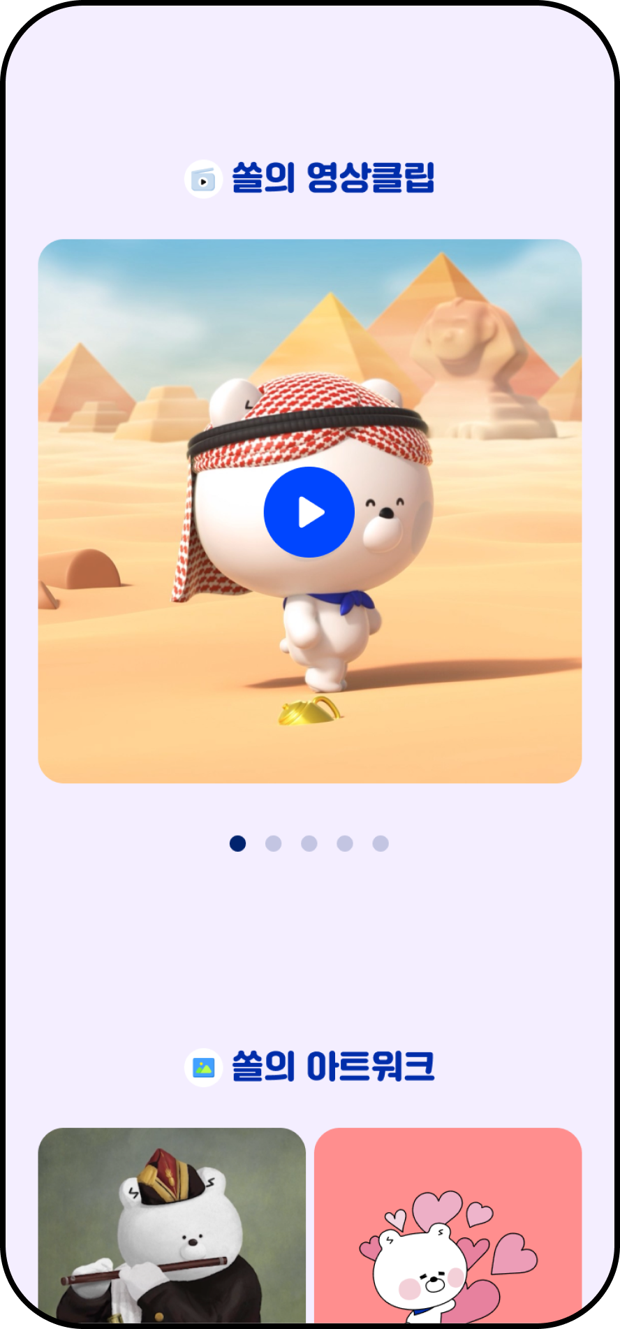 캐릭터의 고유한 매력을 효과적으로 표현하기 위해 특징을 잘 드러낼 수 있는 그래픽 요소를 세심하게 발굴하고, 이를 전체 디자인 전반에 유기적으로 적용했습니다. 동시에 MZ세대가 관심을 갖고 공감할 만한 다양한 주제를 중심으로 이야기를 풀어내어, 캐릭터와 사용자 간의 자연스러운 연결점을 마련했습니다. 이러한 감각적인 접근을 토대로 위트 있고 개성 넘치는 스티커를 제작해 화면 곳곳에 배치함으로써, 시각적 재미와 함께 힙하고 역동적인 분위기를 완성했습니다. 더불어 각 콘텐츠의 주제에 맞춰 짧지만 인상적인 단위의 이야기를 구성하여, 사용자가 숏츠 영상을 가볍게 감상하듯 직관적이고 몰입감 있는 경험을 이어갈 수 있도록 했습니다.